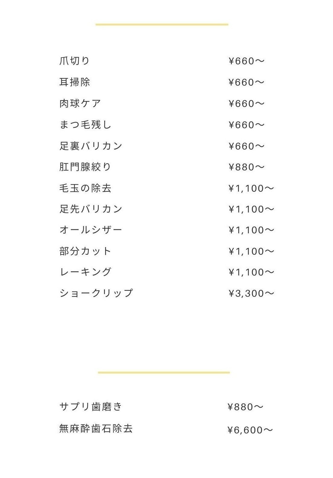 ※サプリ歯磨きと無麻酔歯石除去は、シャンプーコースまたはカットコースをご利用いただいた時のみご利用いただけます。